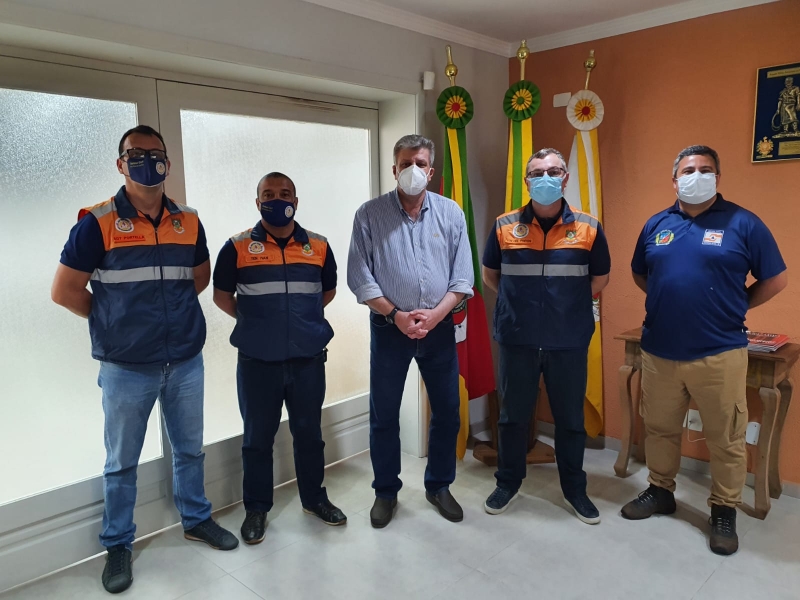 O prefeito José Otávio Germano e o coordenador da Defesa Civil de Cachoeira do Sul, Edson das Neves Junior, receberam na quinta-feira (4) o Tenente-coronel Pinton, coordenador regional de Defesa Civil, com sede em Santa Maria. Ele estava acompanhado pelo Sargento Portela e Tenente Ivan.