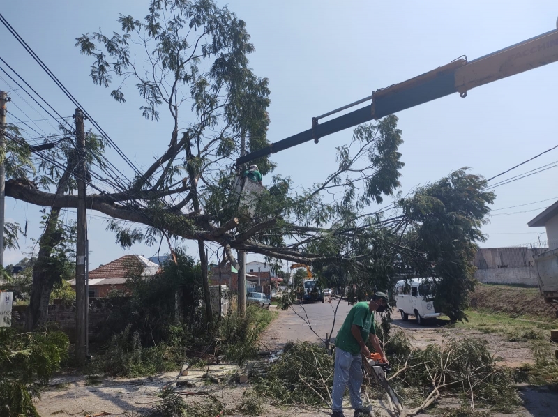 Equipes da Prefeitura trabalham em diversos pontos após o temporal da segunda