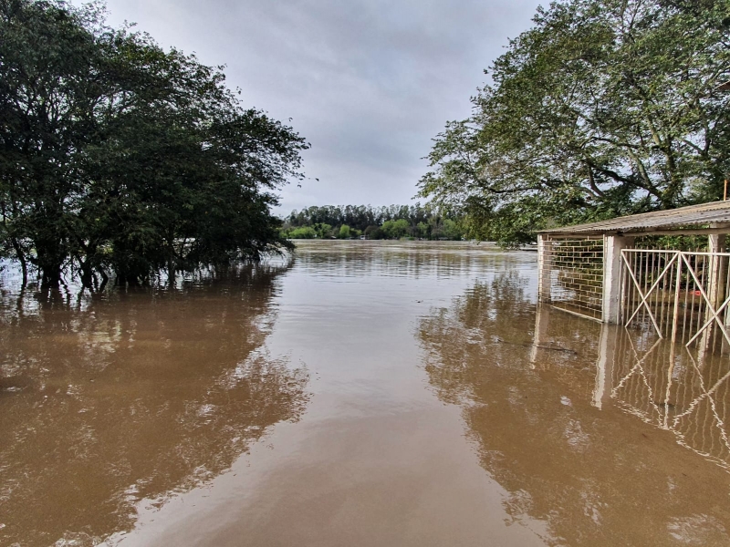 A entrada que dá acesso ao Balneário Seringa já está cortada pelas águas. Já a estrada do Balneário São Lourenço deve ser atingida em breve com um aumento do nível em mais cerca de 50 centímetros.