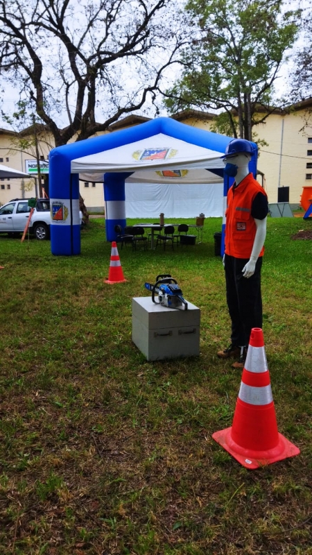 Já a Defesa Civil está com demonstração de materiais de urgência e emergência, material informativo sobre os desastres mais recorrentes no município e sobre as ações de proteção e Defesa Civil, além de orientações para a população sobre cadastro e áreas de risco