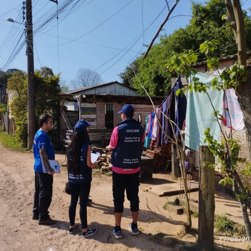 ROTARY CLUB CACHOEIRA DO SUL: A Ação de mapeamento estreou os uniformes, coletes e bonés doados pelo Rotary Cachoeira do Sul ao projeto agentes mirins e voluntários, com recursos obtidos através de projeto aprovado pelo Clube junto a Fundação Rotária. O uso do uniforme de identificação é fundamental nas ações de Defesa Civil, pois eles identificam o agente junto à comunidade e serve de referência a quem busca auxílio.