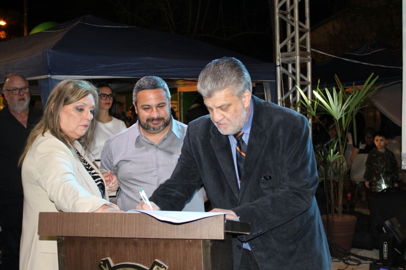 Antes de iniciar sua fala na inauguração do novo pórtico de Cachoeira do Sul nesta quarta-feira, o Prefeito José Otávio Germano aproveitou o momento e assinou o ofício que será encaminhado para a Câmara de Vereadores para a criação do Sistema Municipal de Proteção e Defesa Civil
