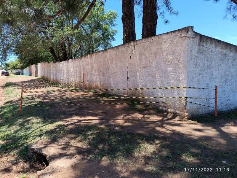 Defesa Civil interdita área depois de muro da Escola Dinah Néri apresentar rachadura